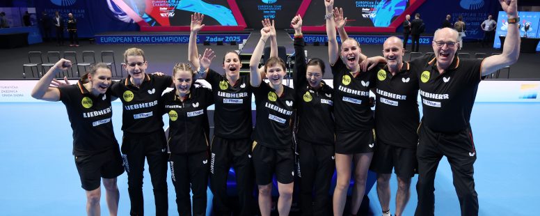 Herzliche Glückwünsche an das deutsche Damen-Team, das bei der EM in Zadar den Titel ohne einen einzigen Satzverlust holte! Ein Team, das auschließlich aus Bundesligaspielerinnen bestand, die eindrucksvoll zeigten, welches Niveau in der Topliga Europas vorherrscht. Hintere Reihe, v.l. Sabine Winter, Annett Kaufmann, Yuan Wan; vorne v.l. Nina Mittelham, Mia Griesel.…