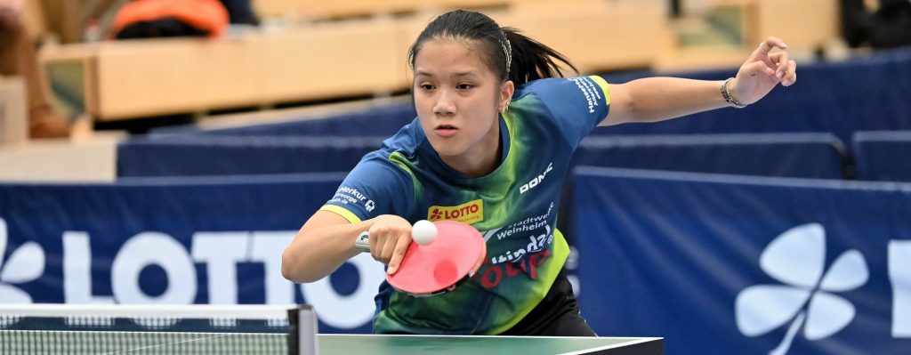 Anfangs sah es jedoch noch gar nicht nach einem ungleichen Duell aus. Zwar unterlagen Jeger/Nguyen den Dachauerinnen Byun/Pranjkovic mit 0:3, doch zwei der drei Durchgänge gingen erst in der Verlängerung verloren. Am anderen Tisch punkteten aber Wan/Kim nach starker Leistung gegen Winter/Cosic in fünf Sätzen. Doch es sollte der Weinheimer Ehrenpunkt sein.